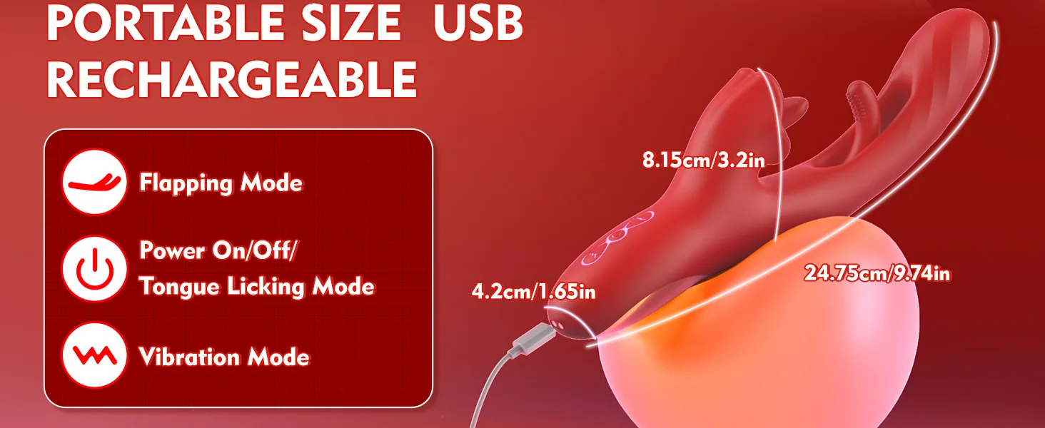 This 3-in-1 women’s vibrator combines tongue licking, flapping, and vibration for an unparalleled multi-sensory experience. The 360° rotating tongue mimics realistic licking, while the hollow flapping section delivers unique pulsing sensations, and powerful vibrations target both G-spot and clitoris for intense internal and external pleasure. 7 licking modes + 7 flapping modes + 7 vibration modes — 21 combinations to explore, from teasing softness to powerful climaxes, perfectly tailored to your desires. Made from soft, body-safe silicone for comfort and easy cleaning; whisper-quiet operation; IPX6 waterproof for bath or shower play; magnetic USB rechargeable — 2 hours charging for 1 hour of uninterrupted fun. Ideal for solo indulgence or couple play, discreet unmarked packaging makes it a perfect intimate gift.