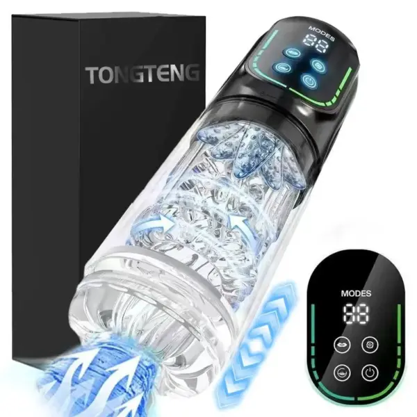 The soft silicone sleeve with textured nodules, a tongue at the tip, dual 7-mode vibration motors, powerful suction, and the mind-blowing 7-mode thrust and rotation functions all work together seamlessly. The controls are intuitive, with separate displays for suction and thrust settings, making it easy to find your favorite combos.