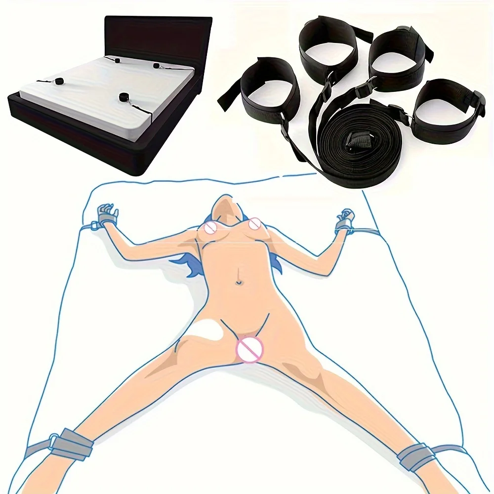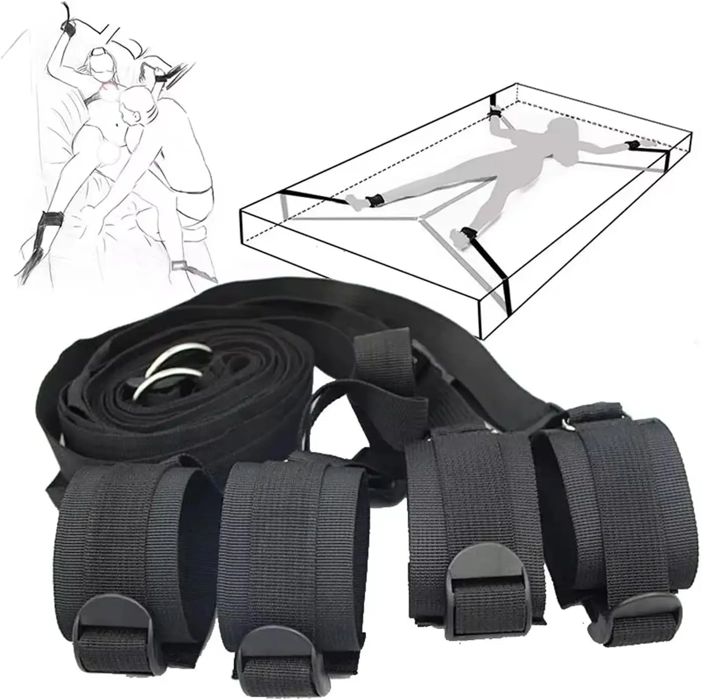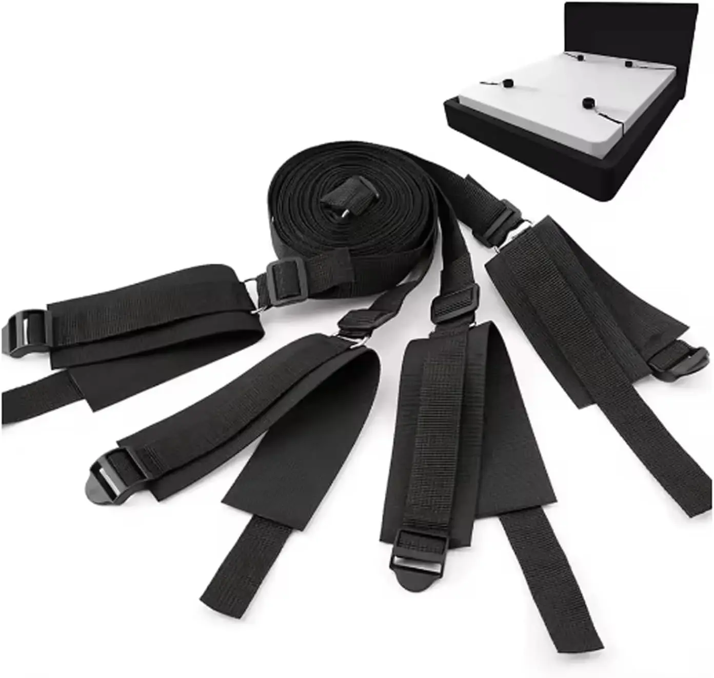 - Includes wrist cuffs, thigh cuffs, and extra-long under-bed straps — allowing hands and feet to be secured to all four corners of the bed in classic spread-eagle or X-position