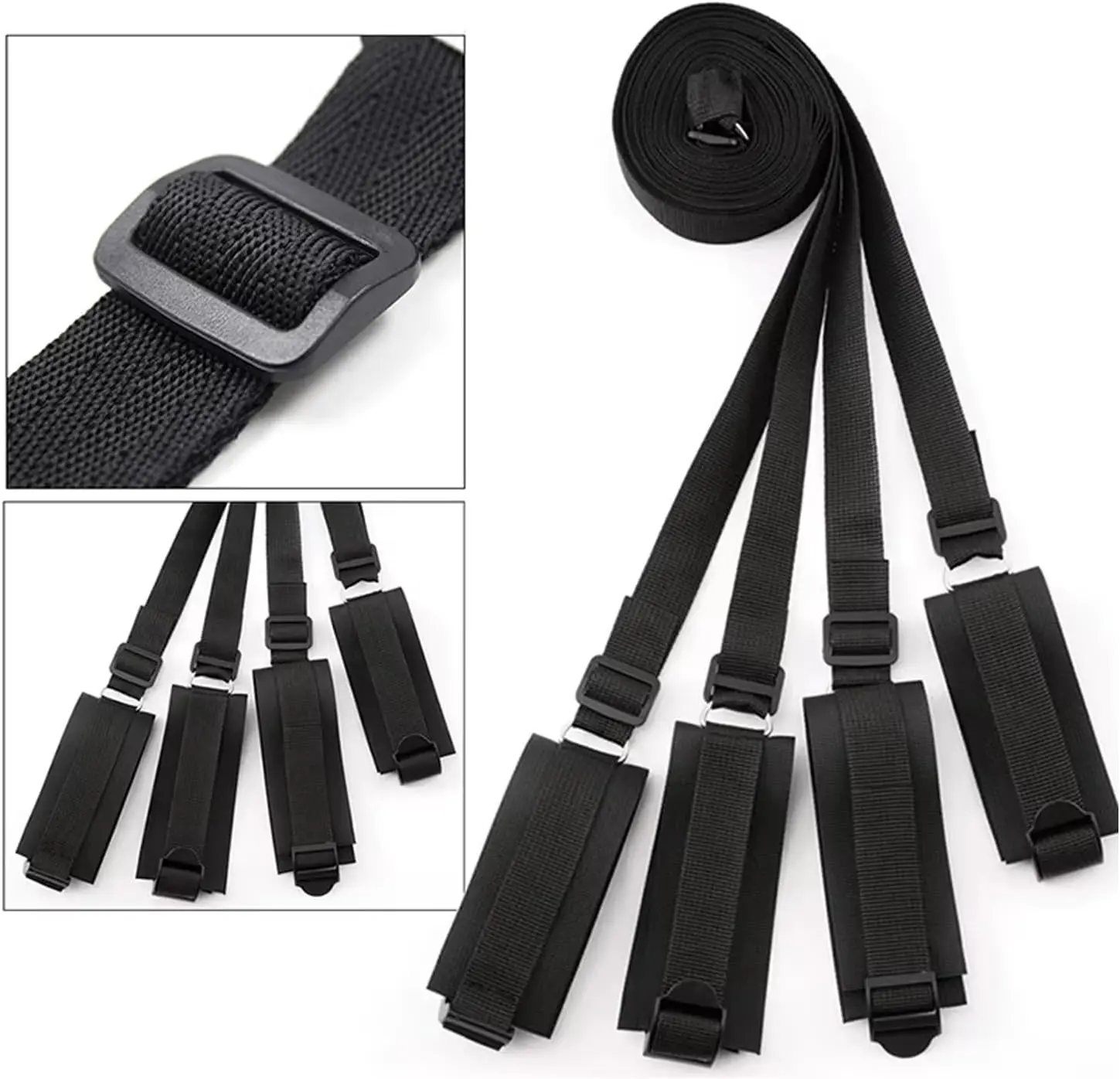 - Each cuff and strap features quick-adjust buckles and metal D-rings — easily customize tightness and length according to bed size and body proportions