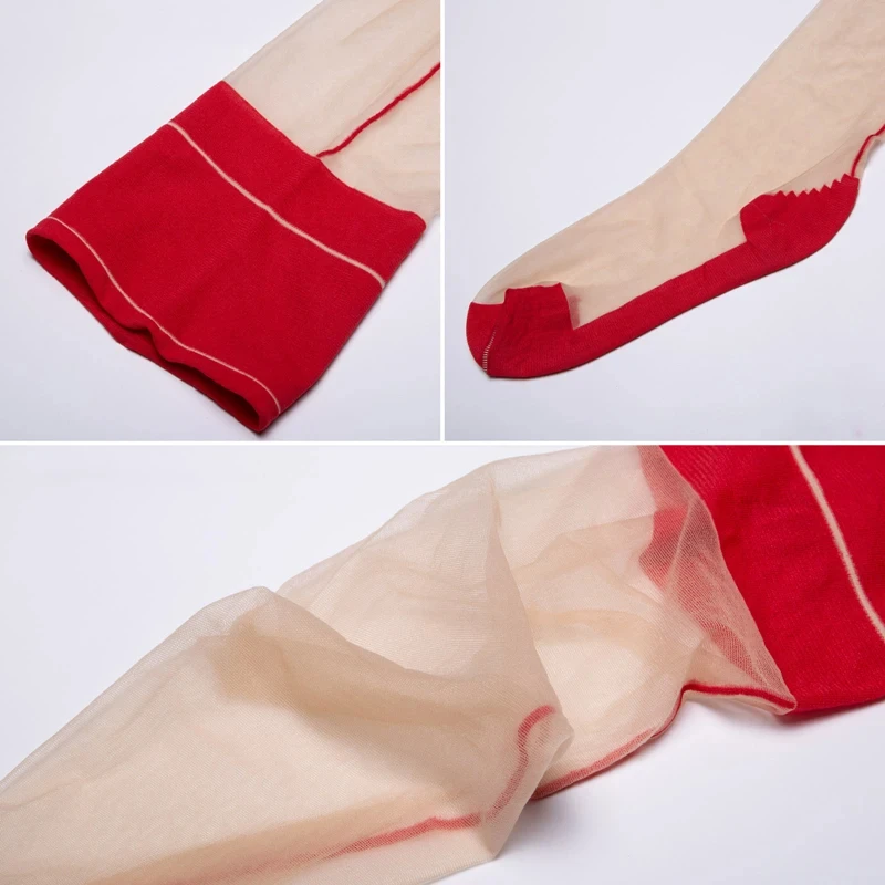 Step into timeless allure with these vintage-inspired thigh-high stockings. The iconic Cuban heel and straight back seam create a sophisticated, leg-lengthening silhouette, while the oil-shiny ultra-thin silk gives a luxurious, glossy sheen that catches every light. Sheer and breathable, they feel weightless on the skin, with delicate patchwork lace adding a teasing feminine touch. Whether paired with heels, lingerie, or evening outfits, these stockings deliver effortless confidence and seductive charm. Discreet packaging for privacy.