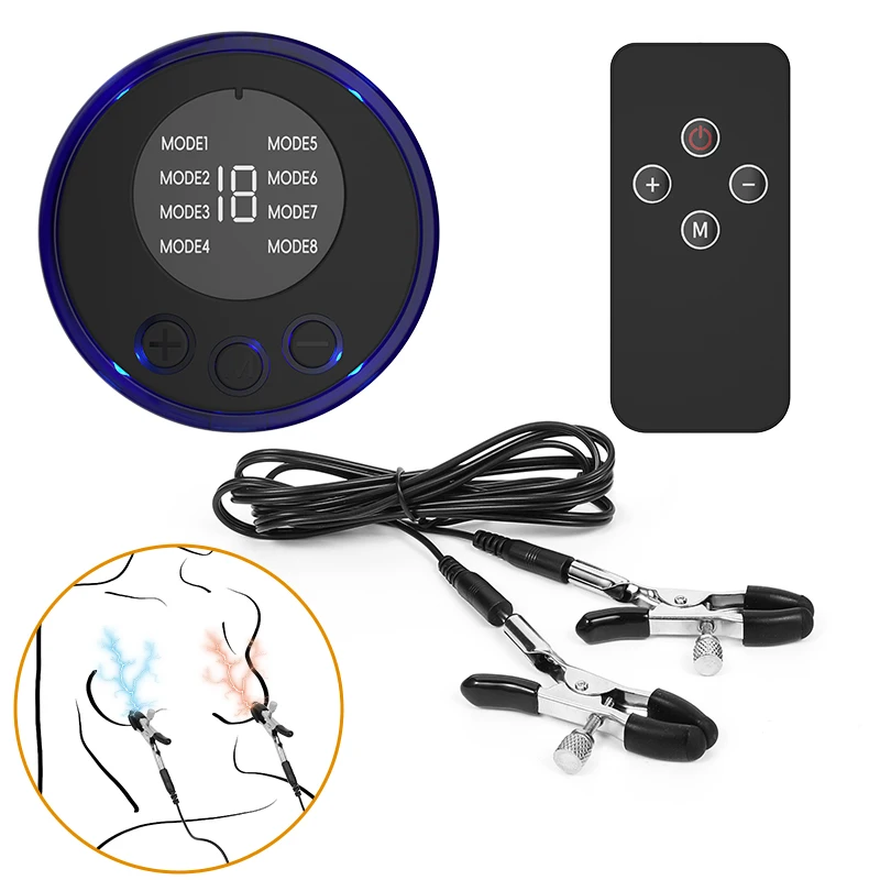 - Two conductive clamps can be placed on nipples, clitoris, labia or other sensitive areas; current flows between positive and negative poles to create stimulation