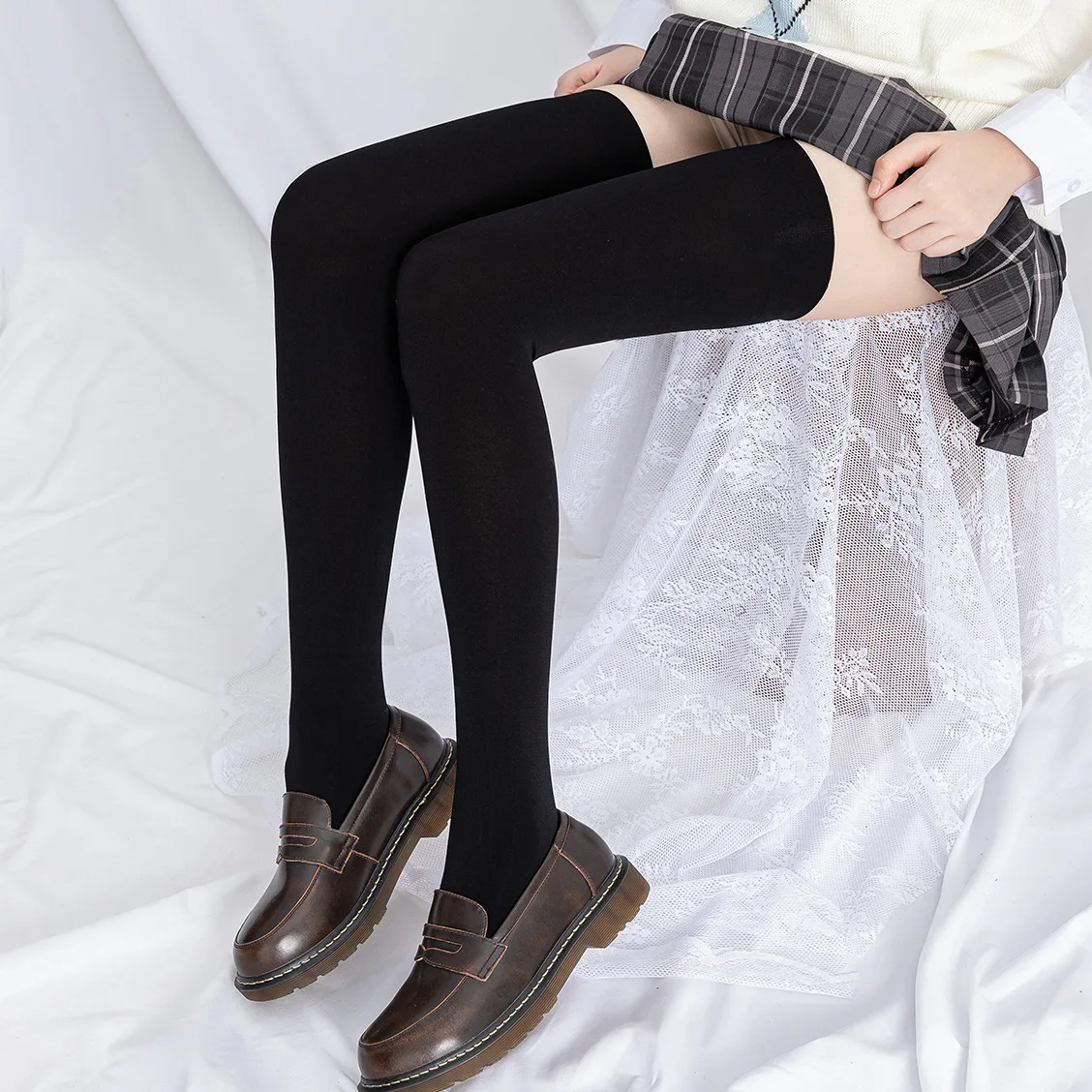 At 67–70cm+ length, they suit heights up to 190cm, offering full thigh coverage and leg elongation. Available in pure white for innocent sweetness and classic black for sleek sophistication—these pair beautifully with pleated skirts, school uniforms, loafers, oversized sweaters, or casual denim. Perfect for JK/Lolita styling, tall-girl fashion, winter warmth, cosplay, or everyday cute layering.