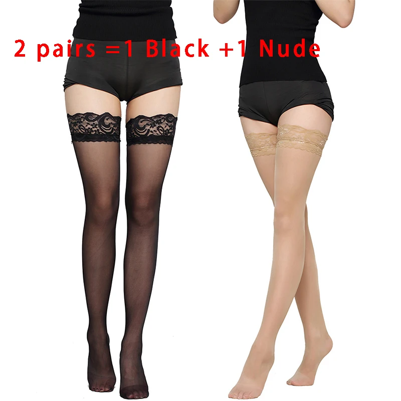 Kave lace silicone anti-slip thigh high stockings are made from ultra-sheer nylon in classic black/white options, featuring rear vertical seam or delicate lace trim running from ankle to thigh top — instantly elongating legs for a slim, tall, and smooth seductive look. Wide silicone grip band at the top ensures secure, no-roll-down fit without digging in, perfect for all-day comfort. Lace accents add romantic sexy details, ideal for pairing with mini skirts, dresses, erotic lingerie, role-play (maid/student/secretary vibes), daily outfits, or intimate bedroom surprises. Discreet, unmarked packaging with no explicit wording ensures complete privacy. Whether to elevate everyday style or spark couple passion, achieve irresistible “leg model” allure!