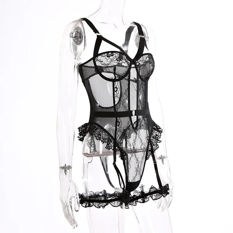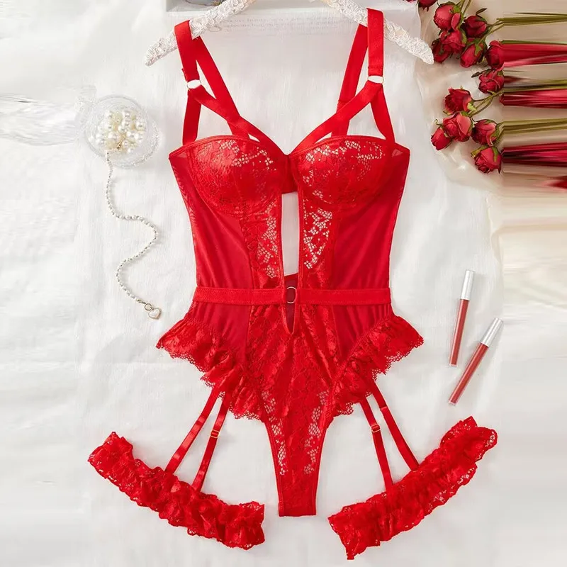 This lace garter teddy lingerie set centers on delicate lace frills and bow accents in red/pink-blue/black options — open-back hollow design with push-up support perfectly sculpts bust and hips, while garter straps and ruffled lace add teasing layers for a blend of romance and raw seduction. Soft, breathable material with excellent stretch and body-hugging comfort; rear zipper or ties for easy on/off — ideal for wedding nights, honeymoons, Valentine’s surprises, anniversaries, couple teasing, light BDSM role-play, or intimate bedroom moments. Discreet, unmarked packaging with no explicit wording ensures complete privacy. Whether as a sizzling gift or mirror-front confidence booster, ignite ultimate romance and passion!