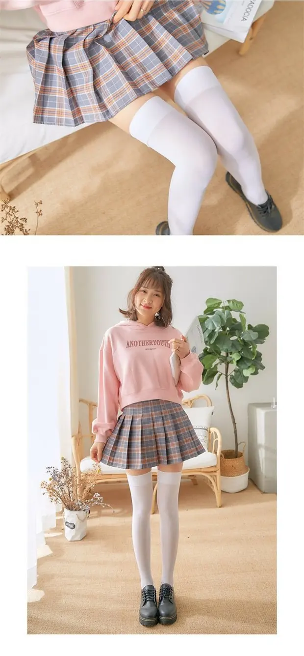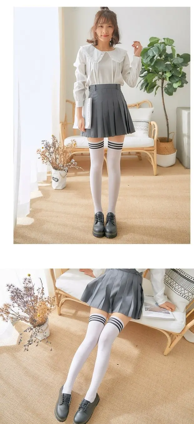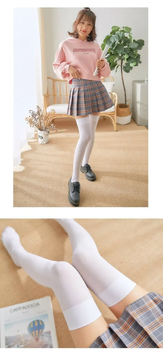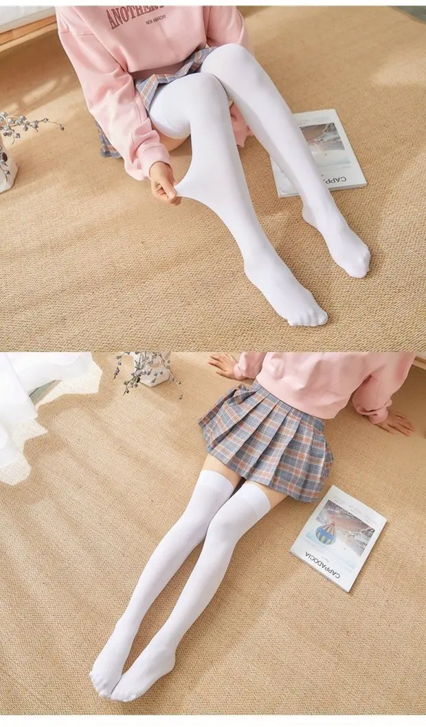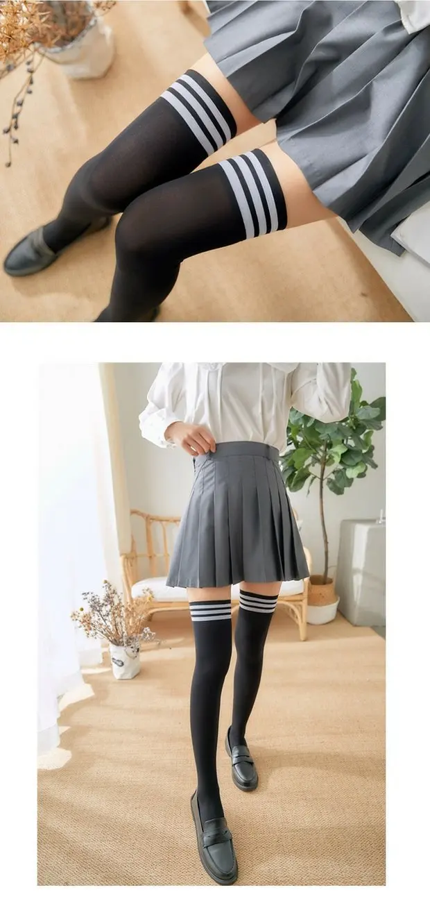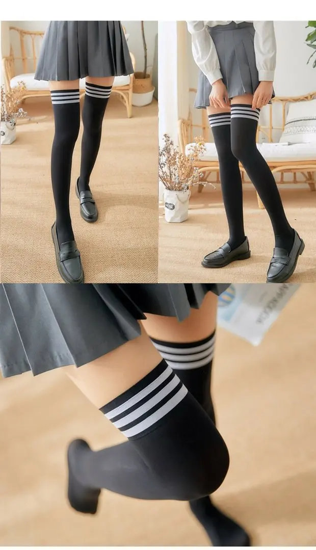 Elevate your Lolita or JK look with these timeless solid color thigh-high socks. Available in sleek black or crisp white, they feature iconic striped cuffs for that signature cute-yet-bold vibe. Made from soft, stretchy nylon, they offer a flattering over-knee fit (52cm length) that’s comfortable and secure for extended wear. Ideal for pairing with pleated skirts, school uniforms, or casual outfits – add effortless charm and confidence to any ensemble. Discreet packaging for privacy.