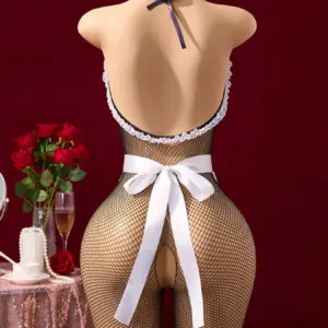 Maid Crotchless Fishnet Bodystocking – Lace Apron Sheer Role Play Lingerie 1Maid Crotchless Fishnet Bodystocking – Lace Apron Sheer Role Play Lingerie