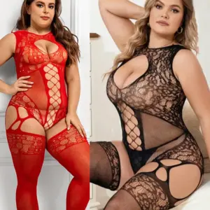 9 reviews for Plus Size Fishnet Body Stocking for Women – Crotchless Lace Lingerie, Sexy Hollow Out Bodysuit