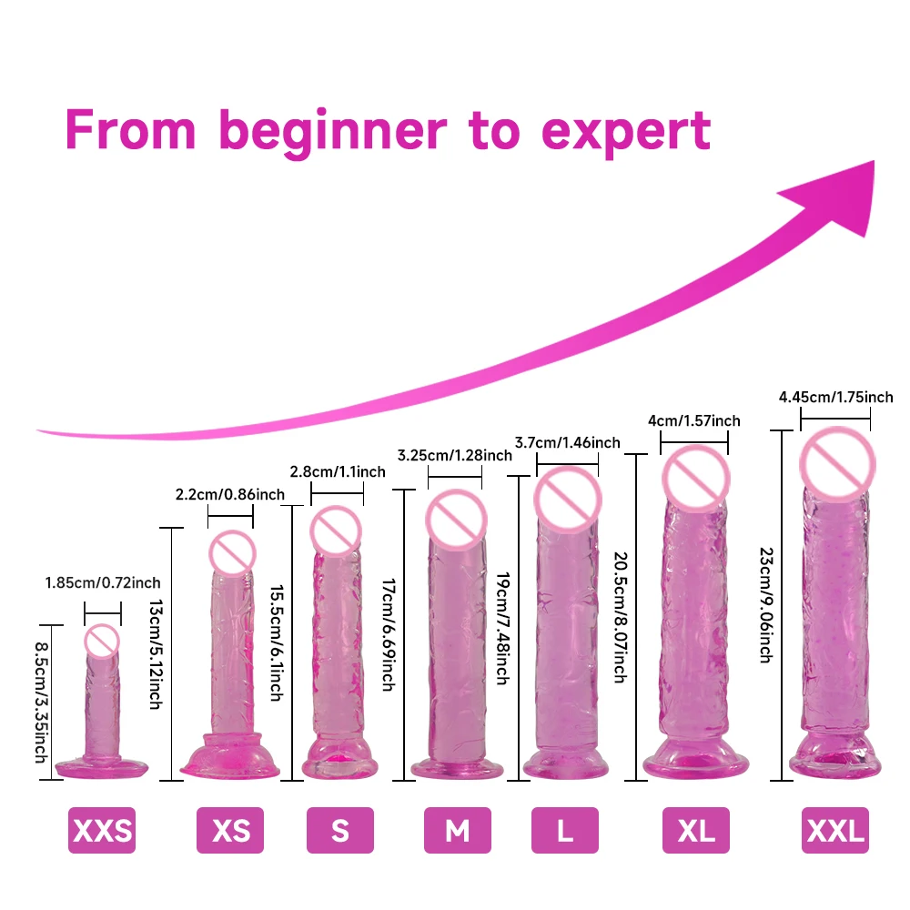 This is a progressive realistic jelly dildo series designed for users at every experience level — from super small (XXS) to extra large (XXL), offering 8 size options so you (or your partner) can gradually explore your body’s limits and pleasure zones.
