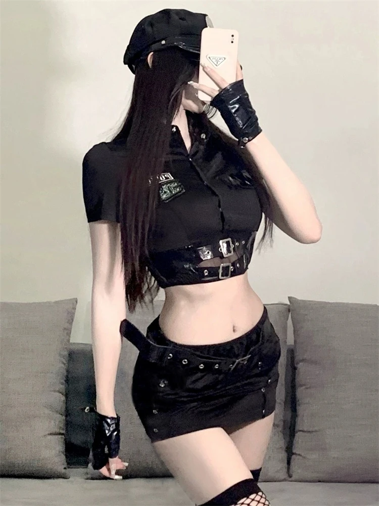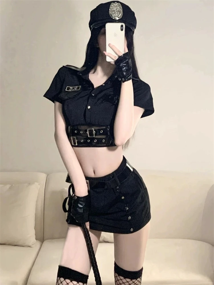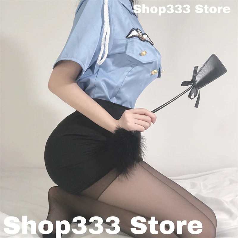 Step into commanding allure with this sultry blue policewoman outfit, designed for bold role-play, Halloween parties, themed events, or spicy cosplay sessions. The short-sleeve button-up shirt with badge details pairs perfectly with a form-fitting mini skirt, complete with playful accessories like a feather tickler/whip for that irresistible authority-meets-seduction vibe. Flattering fit, sheer stocking-friendly style, and eye-catching details make it a standout choice for turning heads and sparking fun fantasies.