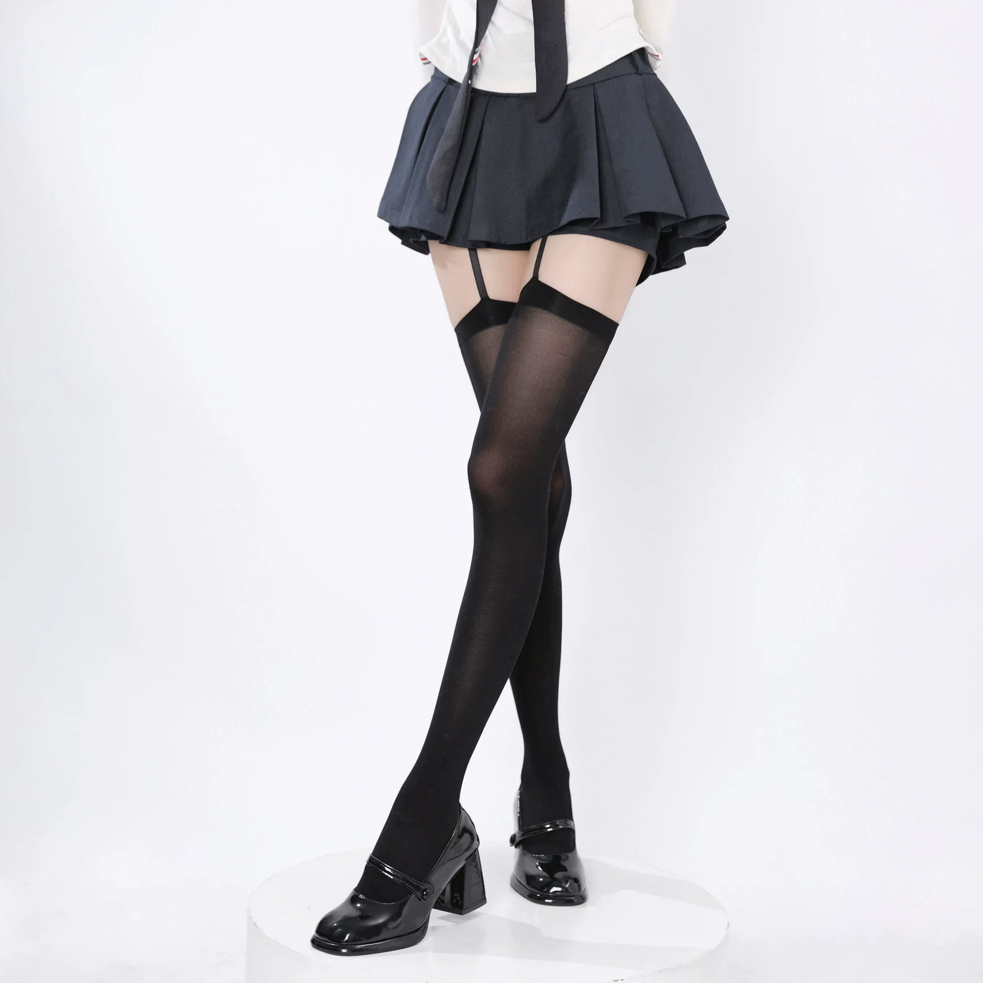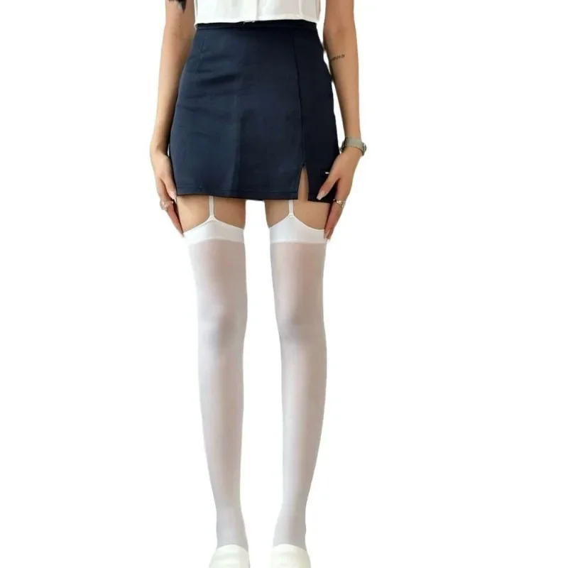 Slip into these sexy irregular cutout suspender thigh high stockings and unleash your boldest Lolita JK tease. The daring irregular exposed skin panels create a flirty, barely-there effect that highlights your curves with seductive see-through allure, while the soft thin sheer fabric feels like velvet against your skin. Adjustable suspenders hold everything securely in place all day or night—no slipping, no extra garters. Perfect for summer heat, schoolgirl cosplay, or steamy nights, these black and white thigh highs turn every step into pure naughty temptation.
