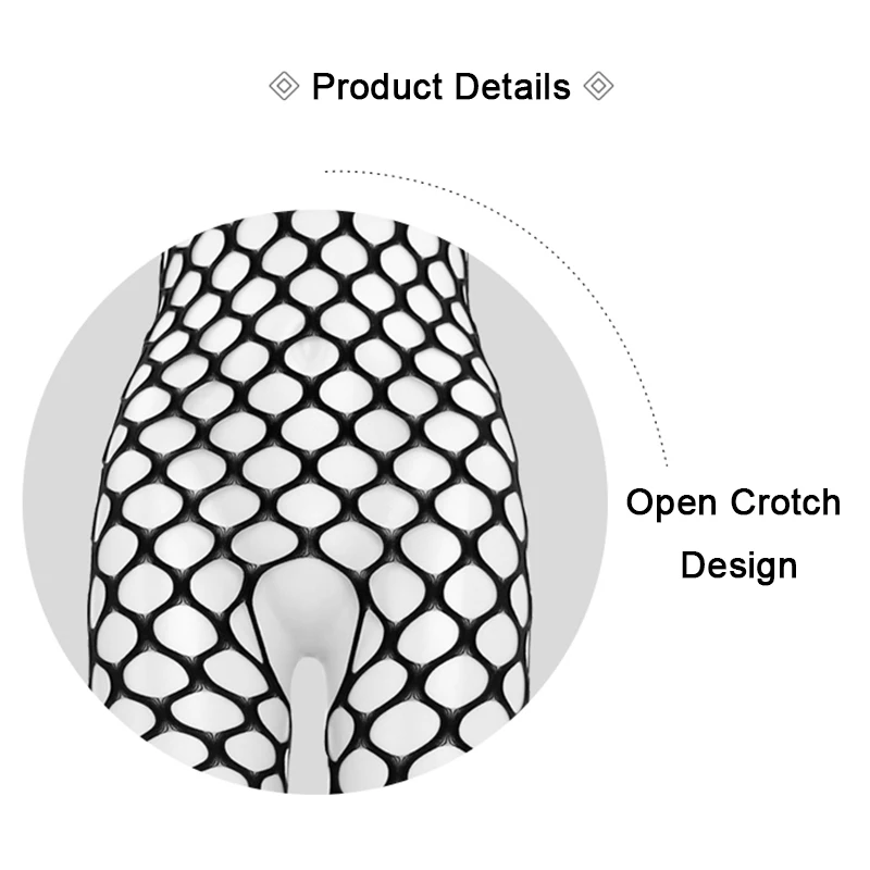 Strapless oversized fishnet for bold transparency & breathability. Seamless all-in-one elongates legs and sculpts curves instantly. Open crotch for direct effortless intimacy. High-stretch, comfortable fit. Ideal for romantic nights, parties, intimate surprises.