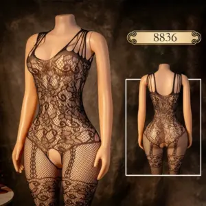 Crafted with advanced warp-knitting technology, this bodystocking offers exceptional multi-directional stretch, ensuring a perfect, non-restrictive fit for curvy silhouettes. The elegant off-shoulder neckline complements the intricate hollow-out patterns, visually elongating the neck and sculpting a balanced waist-to-hip ratio. Made from premium, skin-friendly fibers, it feels like a second skin—less a garment, and more a statement of self-assurance.