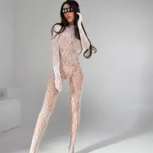 This sheer lace bodystocking blends seduction with sophistication. Intricate floral lace combined with fine mesh creates a powerfully teasing semi-transparent look. The head-to-toe one-piece design beautifully sculpts the female form – long sleeves and tight fit elongate arms and legs for a strikingly elegant silhouette.