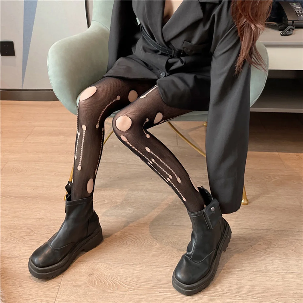 Embrace rebellious charm with these daring thigh-high mesh stockings, showcasing bold hollow-out patterns like oversized diamonds, spiderweb chains, horizontal stripes, big polka dots, and geometric cutouts for maximum edge. The lightweight, stretchy nylon offers breathable comfort and a flattering leg-hugging fit, with some styles featuring delicate lace tops or cuffs for added femininity.