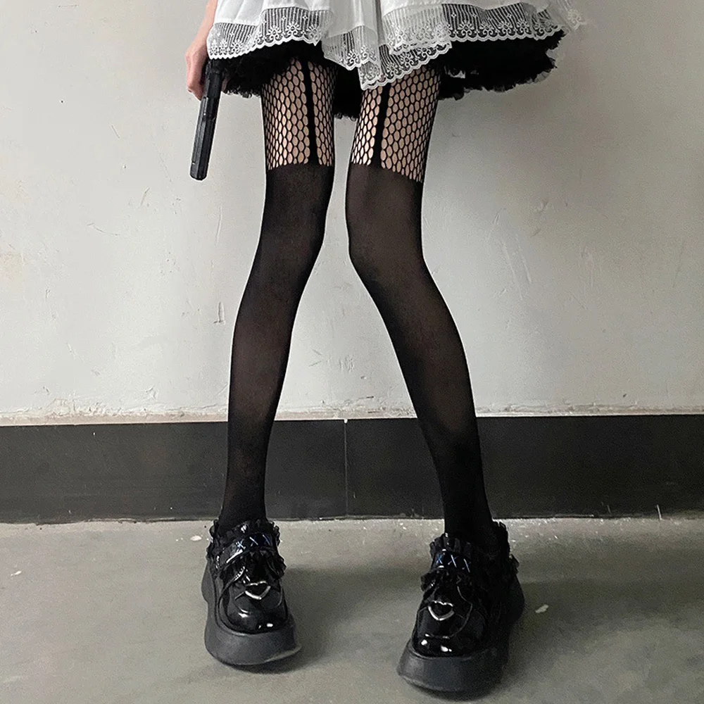 Perfect for Y2K revival outfits, punk street style, Lolita/JK uniforms, club nights, cosplay, or layering under minis and boots. The black mesh brings sultry attitude, while white variants add sweet contrast—ideal for mixing cute and fierce aesthetics.