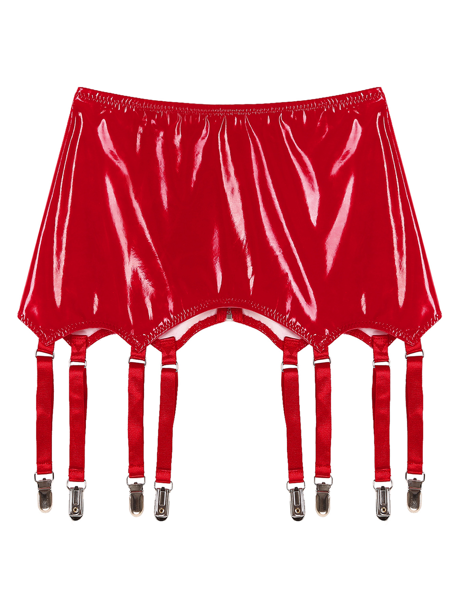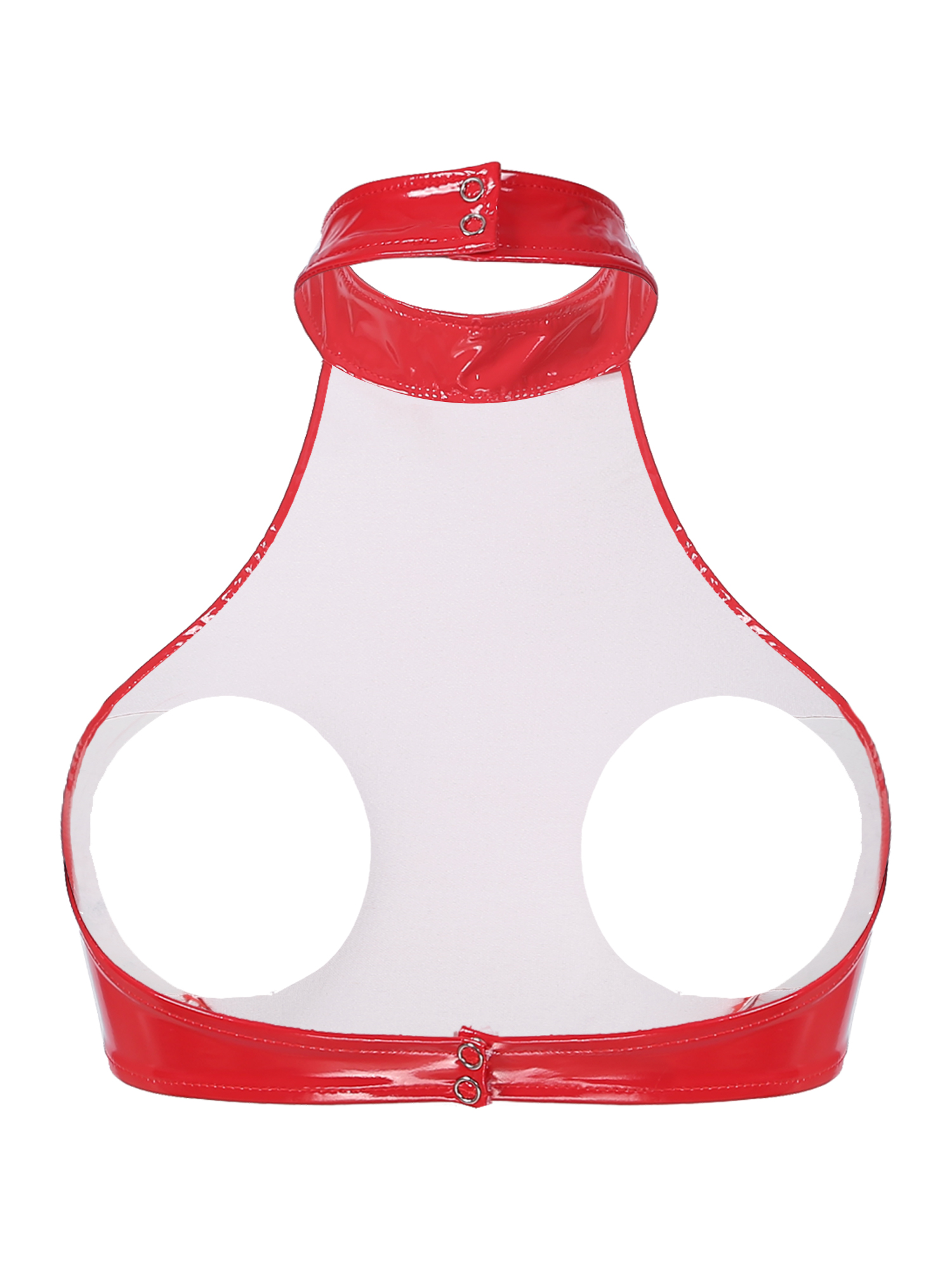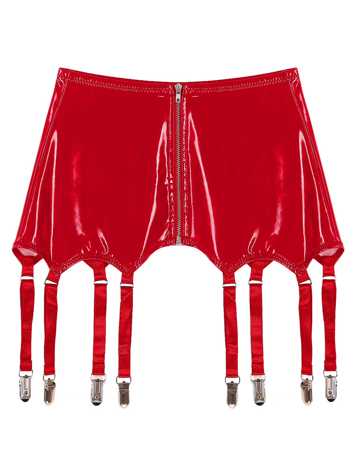 This YZYif patent leather open-cup garter set is made from premium high-shine patent leather — glossy, soft, and skin-friendly for ultimate luxury feel. The high-neck hollow bra top features full open-cup, wire-free design to boldly showcase natural curves; the mini skirt has rear zipper for easy wear, while multiple metal garters with clips securely hold stockings — blending restraint and tease for powerful queen dominance and taboo allure. Available in black/red/transparent colors, perfect for light to medium BDSM play, queen/slave role-play, couple erotic parties, wedding nights, honeymoons, Valentine’s Day, anniversaries, or intimate surprises. Discreet, unmarked packaging with no explicit wording ensures complete privacy. Whether as a sizzling gift or your mirror-front wild release piece, ignite ultimate passion and dominance!